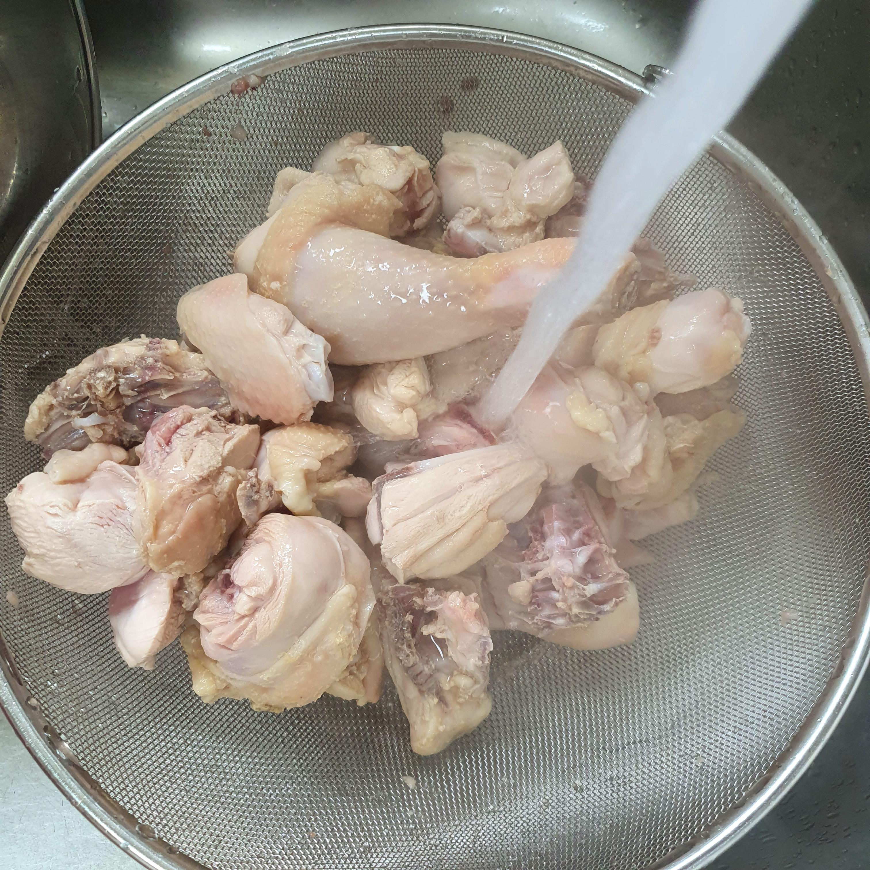 1. 닭 손질 후 끓는물에 약 1분정도 데쳐주고